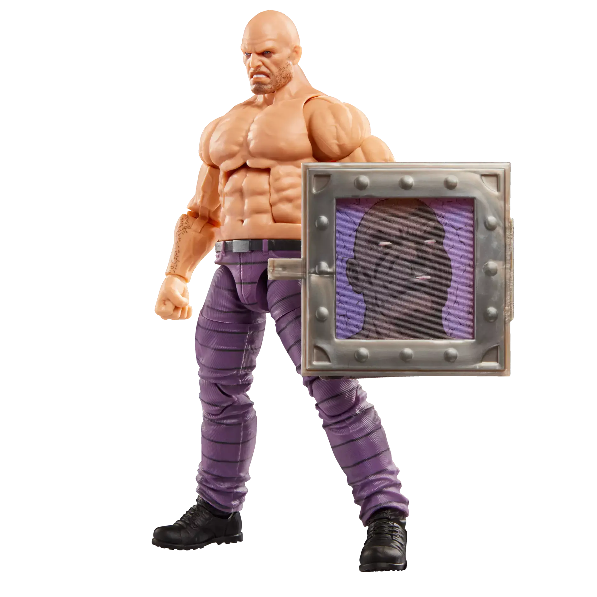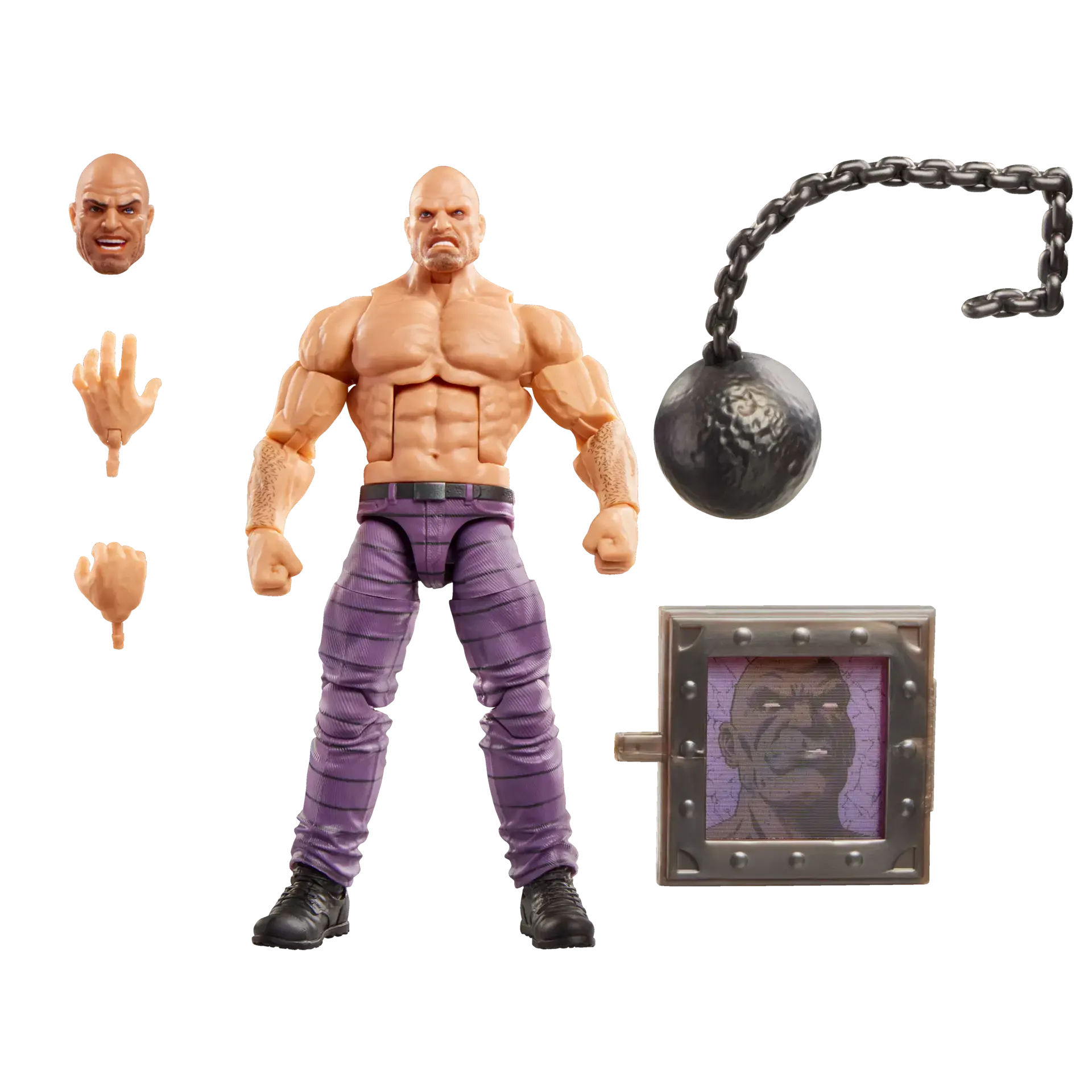Featuring comic-inspired design and deco, it includes an alternate pair of hands, an alternate head, and a ball and chain, as well as a "secret" shield inspired by the original Secret Wars version of the figure.