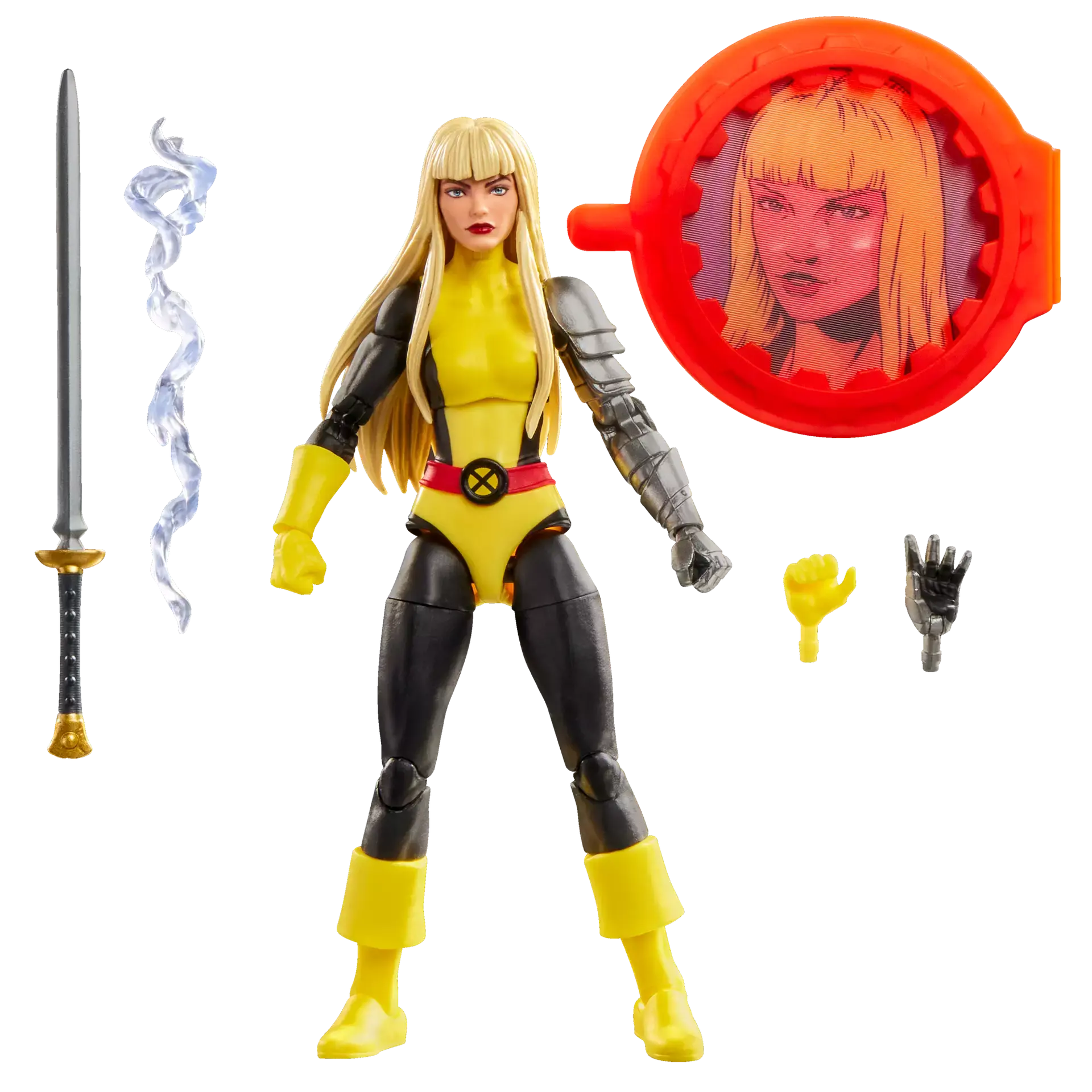 This Hasbro Marvel Legends figure resembles Magik from the Marvel comics Secret Wars II and X-Men and New Mutants.